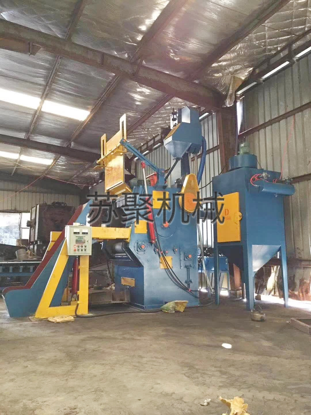 将工件放入橡胶履带滚筒中,操作人员按下“运行”按钮,抛丸室门气动关闭,抛丸清理开始,履带向前运行,工件不断地进行翻滚,高效强力抛丸器将抛丸高速抛射到正在翻滚的工件表面上,工件可完全均匀地得到清理。钢丸通过履带上的溜孔流入螺旋输送机,再将钢丸输送到斗式提升机,经斗式提升机提升到分离器,被分离后存储待用。抛丸结束后,抛丸室门自动开启,履带反转,将工件卸出。